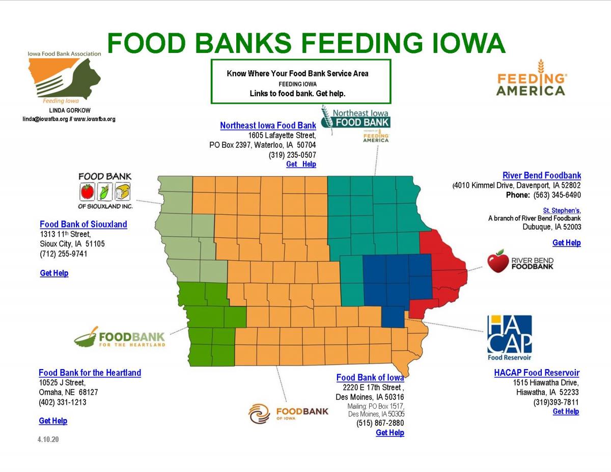 The Iowa Food Bank Association (IFBA) is a collaboration of Feeding America food banks and affiliates that serve each of Iowa’s 99 counties. Together, the food banks serve over 1,500 non-profit organizations serving children, adults, veterans, and seniors. These organizations include food pantries, emergency meal sites, congregational meal sites, emergency shelters, and other sites that provide food to clients.